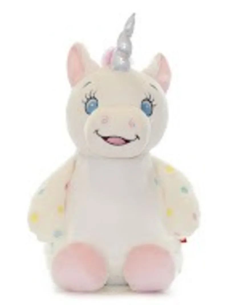 Suitable from Birth and machine washable, this soft spotty Unicorn looks and feels beautiful.
